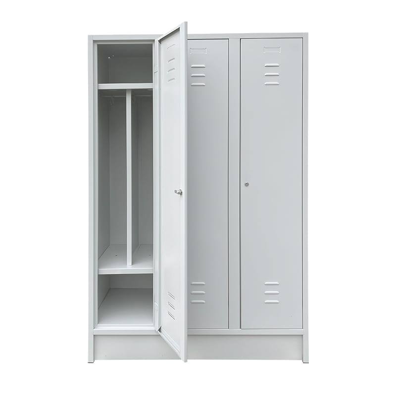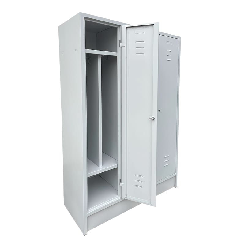 Kovinska garderobna omara s prekatom na sredini omogoča ločevanje umazanega in čistega perila oz. civilnih in delovnih oblačil. S to vrsto omare lahko ugodite HACCP predpisom, saj sredinski prekat omogoča higiensko ločevanje civilnih in delovnih oblačil.